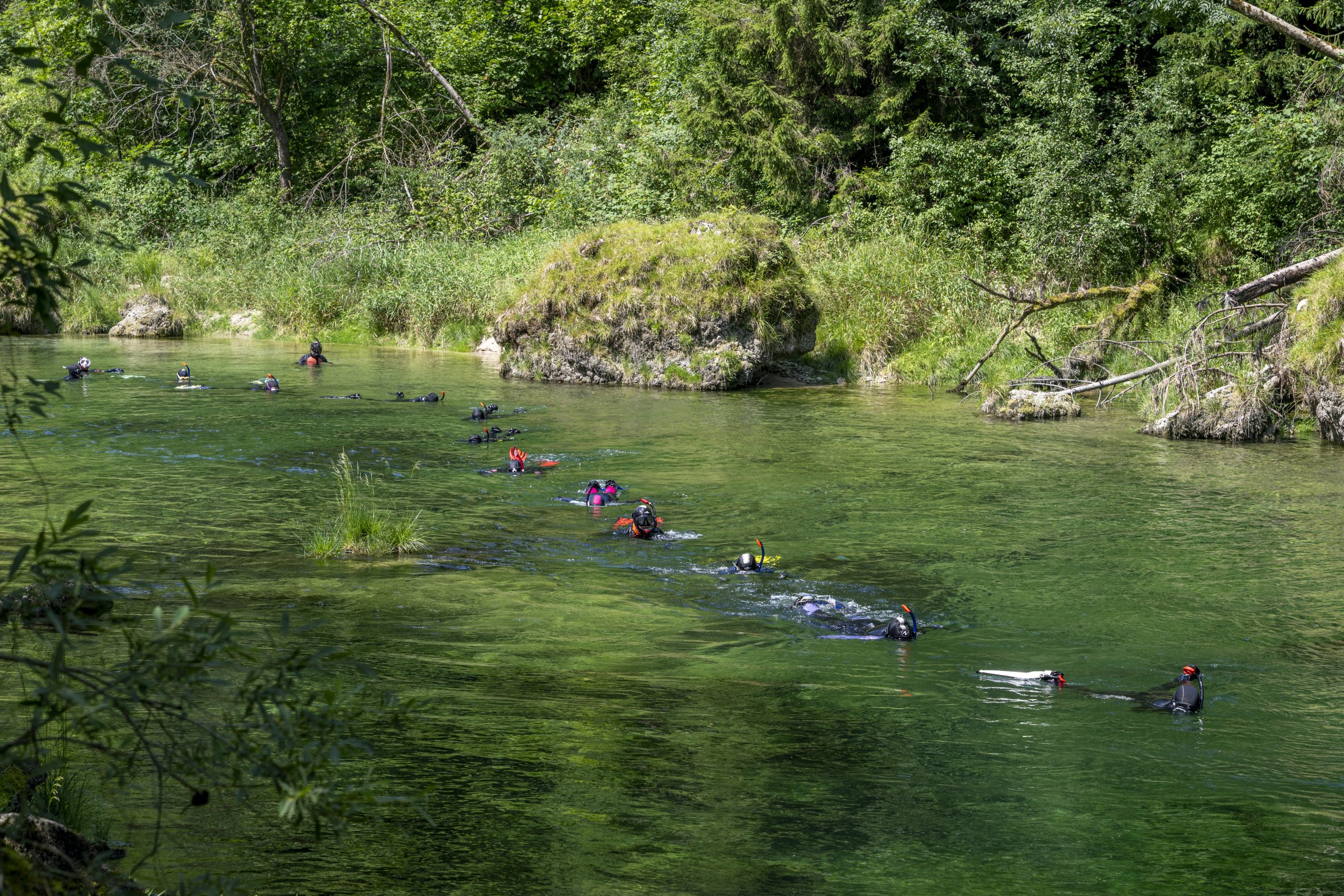 Barbenschwärme und mit etwas Glück den Huchen begegnen – Das ist Scuben in der Traun. Eine wahrlich