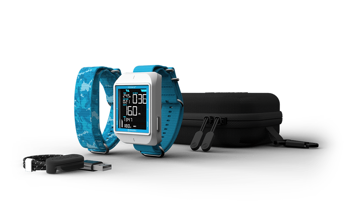 Tauchcomputer Deepblu Cosmiq⁺ inkl. Nylon NATO Armband, Displayschutzfolie, USB Lader, Bungee, Heavy Duty Camouflage Nylon NATO Band, Quick Start Guide, Aufbewahrungsbox in gewählter Farbkombination